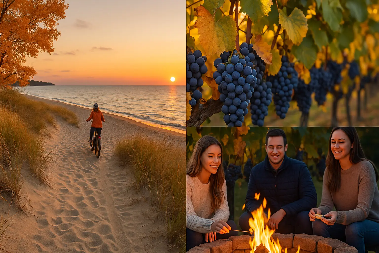 on foot or by e‑bike. Whether you’re hiking through the dunes at Warren Dunes State Park or cruising the countryside on two wheels, the crisp air and peaceful roads make it the perfect season to explore.